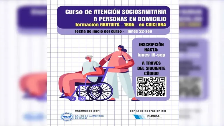 La formación, impulsada por EMSISA y el Banco de Alimentos de Cádiz, comienza el 22 de septiembre e incluye prácticas en domicilios reales. Las solicitudes pueden presentarse hasta el 15 de ese mes.