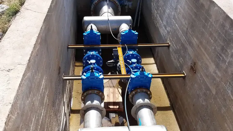 Tuberías del sistema de abastecimiento de Cádiz, donde se han instalado sensores inteligentes para medir caudal y calidad del agua en tiempo real.