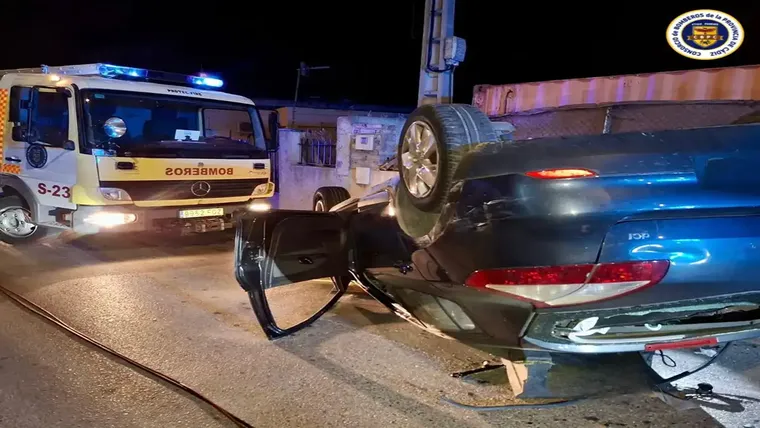 El coche accidentado no solo quedó volcado e inutilizable, sino que además provocó daños en otros dos turismos estacionados en la zona.