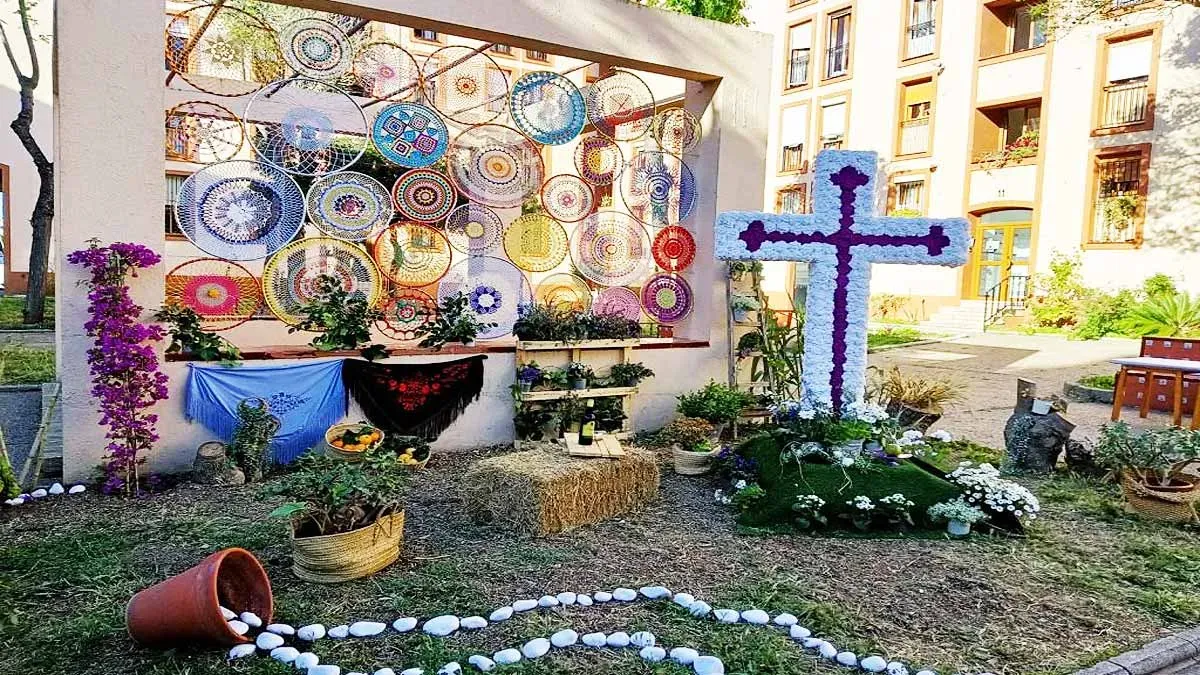 Por otro lado, la modalidad de Patios pone el foco en la integración de flores, arquitectura y ambiente primaveral, sin que el símbolo de la cruz tenga un papel predominante.