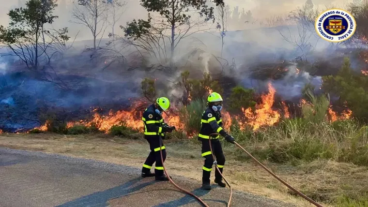 Los incendios forestales que mantienen en vilo a la provincia de Ourense han sumado un importante refuerzo con la presencia de un contingente de 17 bomberos y cinco vehículos pesados del Consorcio de Bomberos de la Provincia de Cádiz.