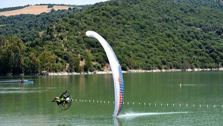 Según explicó, el entorno natural del embalse ofrece unas condiciones más óptimas para la práctica del slalom de paramotor, una disciplina que tiene una combinación de precisión, velocidad y técnica en el aire.