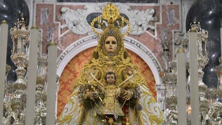 La Virgen del Rosario, Patrona de Cádiz, en la iglesia de Santo Domingo, una de las 22 imágenes participantes en el Besamanos Magno 2025.
