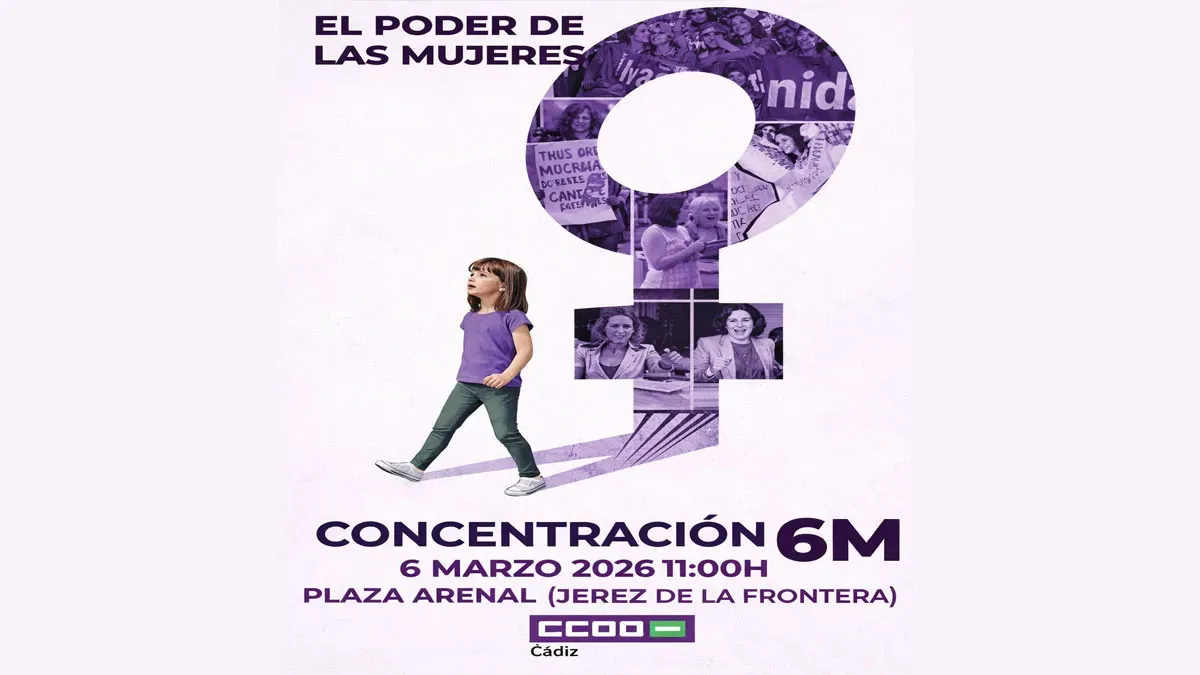 Los sindicatos Comisiones Obreras (CCOO) y la Unión General de Trabajadores (UGT) de Cádiz convocan una concentración el próximo 6 de marzo en la Plaza del Arenal de Jerez de la Frontera para conmemorar el Día Internacional de la Mujer.