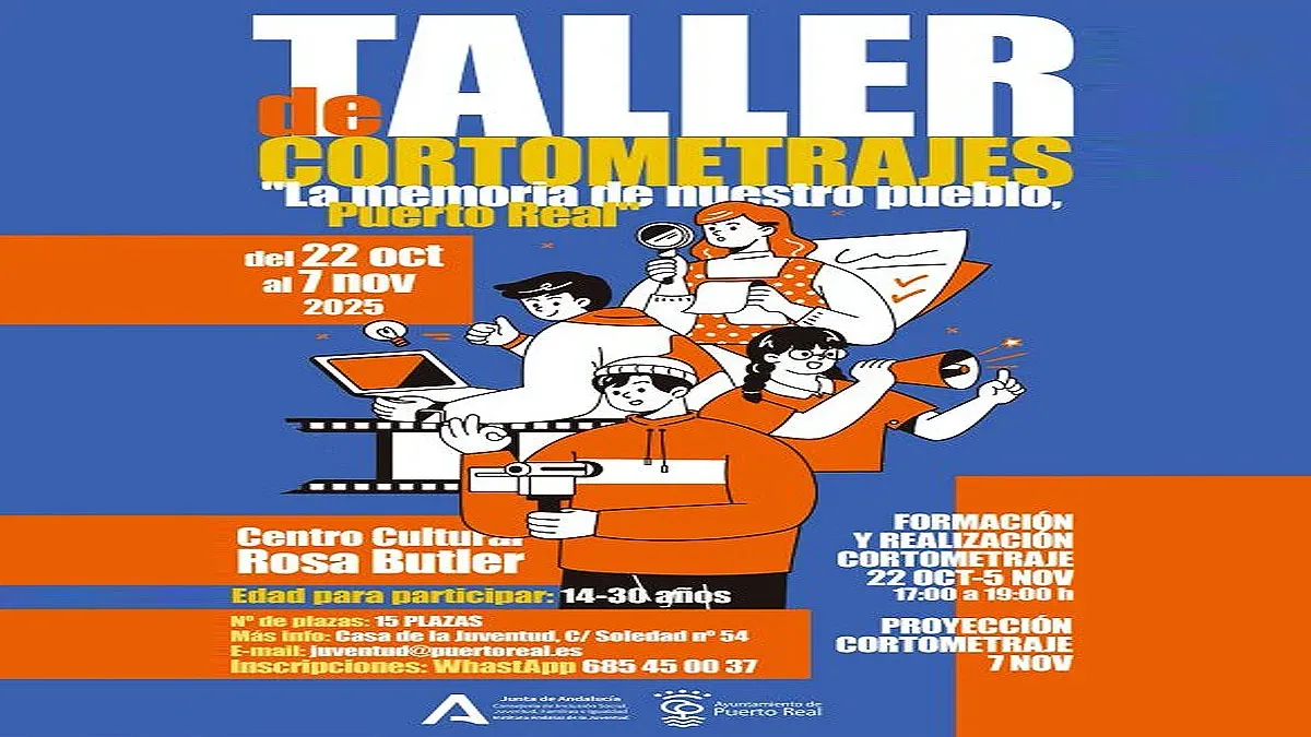 El Ayuntamiento de Puerto Real, junto con el Instituto Andaluz de la Juventud (IAJ), ha anunciado la puesta en marcha de un taller gratuito de cortometrajes destinado a jóvenes con edades de entre 14 y 30 años.