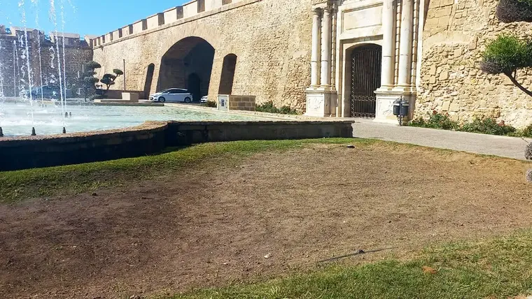 Estado actual de los parterres junto a Puerta de Tierra, donde se celebró el espectáculo de clausura de Cádiz Romana.