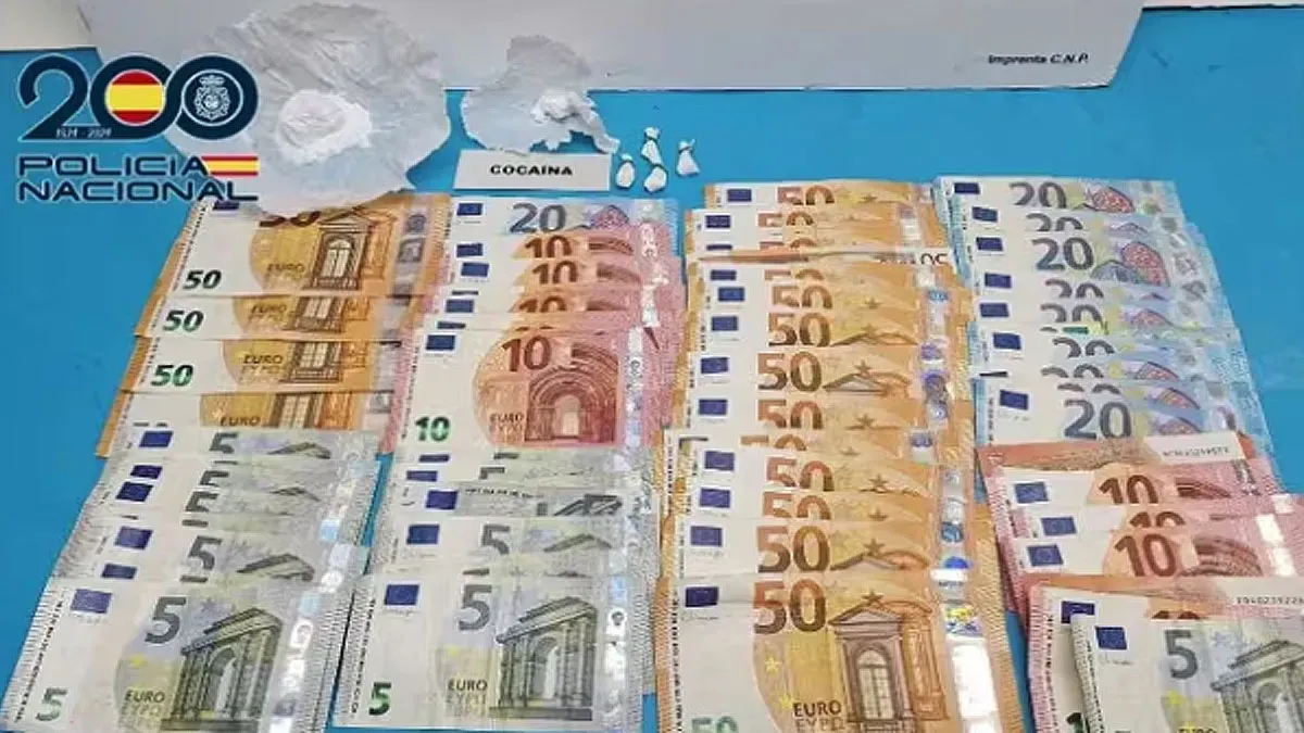En esa intervención se incautaron 27,8 gramos de cocaína y 1.480 euros en efectivo, distribuidos en diferentes billetes, un formato habitual en operaciones de venta de droga al menudeo, ya que permite realizar transacciones rápidas y dificulta el rastreo del dinero.