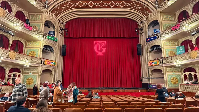 Telón del Gran Teatro Falla en la preliminar de este lunes 12 de enero. Foto: Clara Coto Quintero.