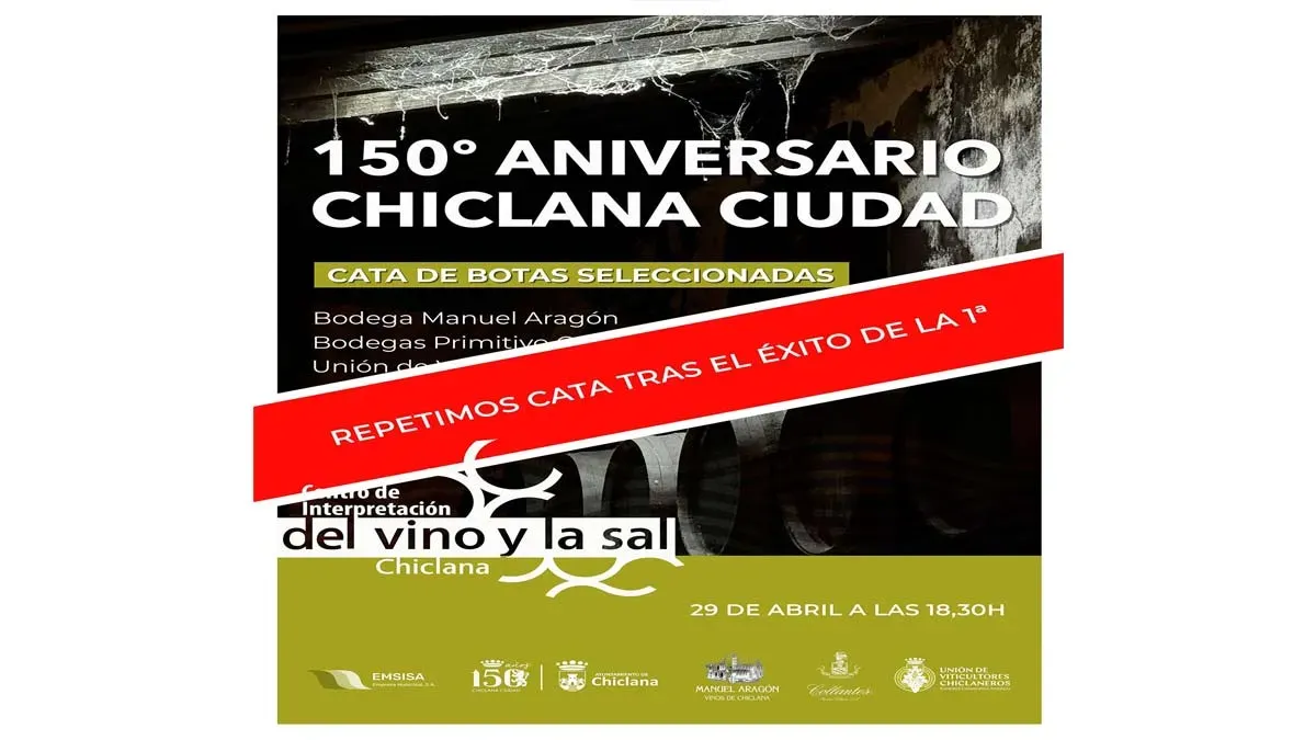 El 150 aniversario del título de Ciudad sigue despertando un enorme interés en Chiclana. El Ayuntamiento de Chiclana ha decidido organizar una segunda cata de vinos seleccionados después del éxito registrado en la primera convocatoria, que reunió cerca de 900 solicitudes para un aforo limitado.
