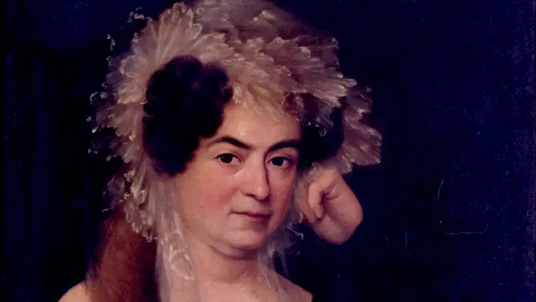 El lienzo retrata a Frasquita Larrea, nombre con el que fue conocida la escritora gaditana Francisca Javiera Ruiz de Larrea y Aherán, figura destacada del Cádiz ilustrado.