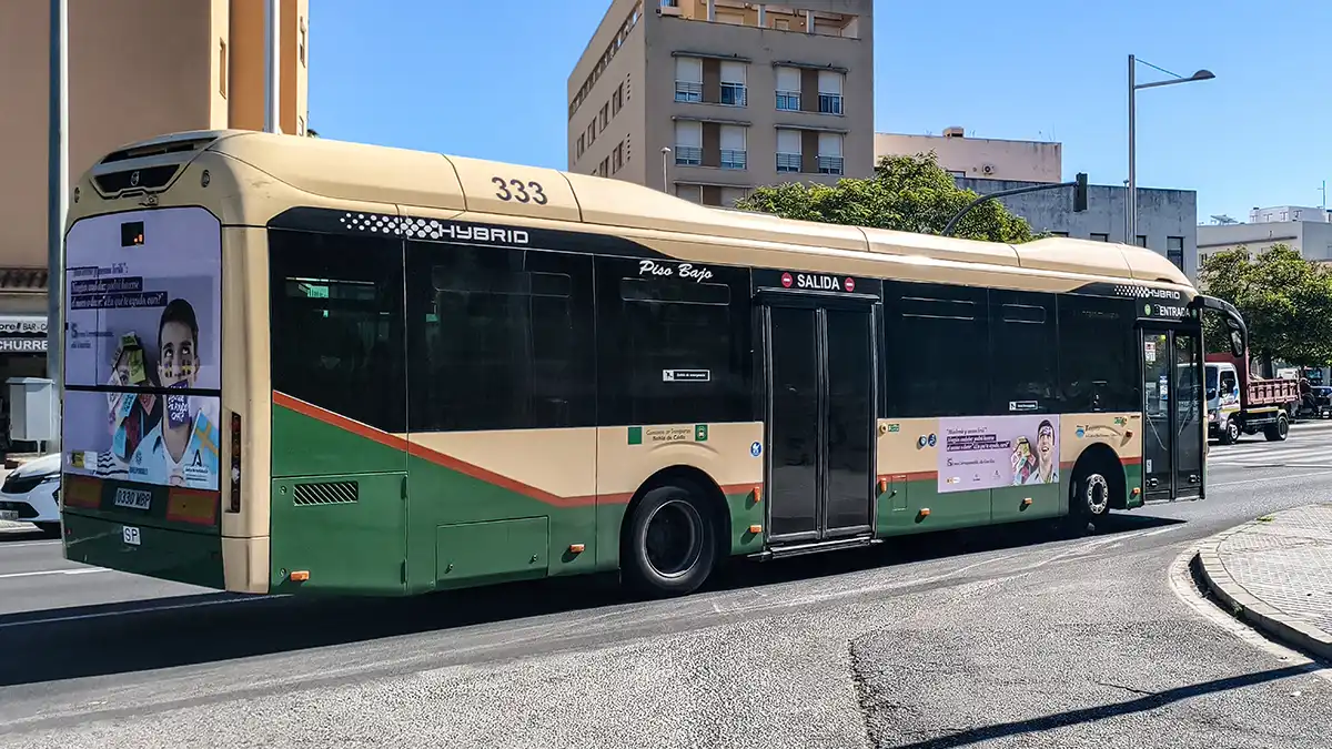 Uno de los autobuses híbridos que ciruculan por Cádiz. Foto: Eulogio García.