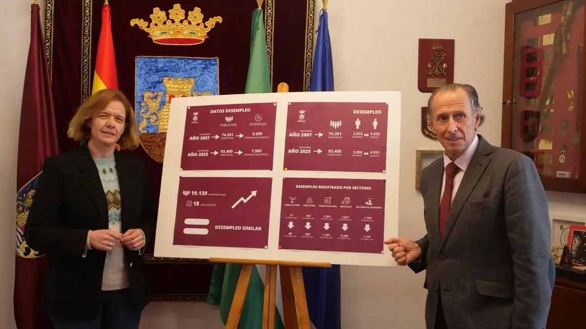 El regidor José María Román, acompañado por la delegada de Fomento Económico, Manuela Pérez, ha destacado la importancia del dato al indicar que “estamos ya en cifras similares a los años buenos antes de la crisis de 2008, aunque con un incremento poblacional de más de 19.000 habitantes”.