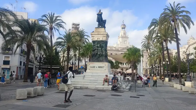 Cielos con algunas nubes y sensación de humedad estos días en Cádiz, como en esta imagen de la Plaza de San Juan de Dios este 20 de agosto. Foto: Eulogio García.