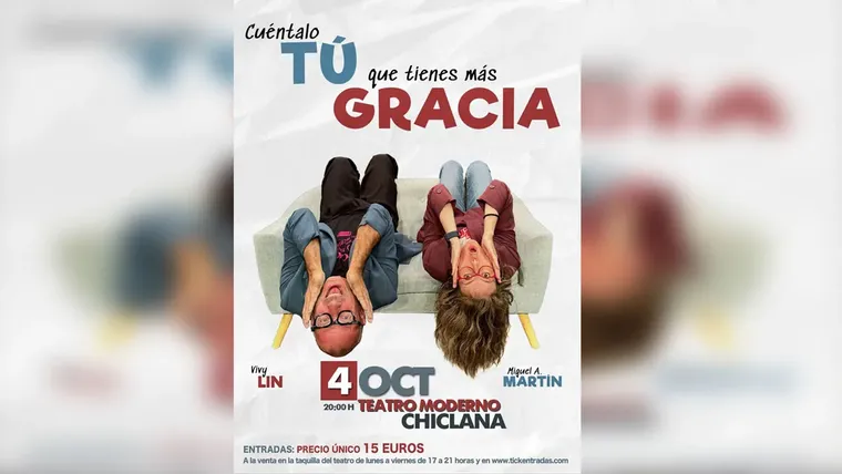 La cita de este sábado en el Teatro Moderno se enmarca dentro de la programación cultural ya en temporada de otoño en Chiclana, que continúa apostando por traer propuestas innovadoras y de calidad al público local. El carisma de Miguel Ángel Martín y Vivy Lin, la noche apunta a convertirse en una de las más divertidas de la temporada.
