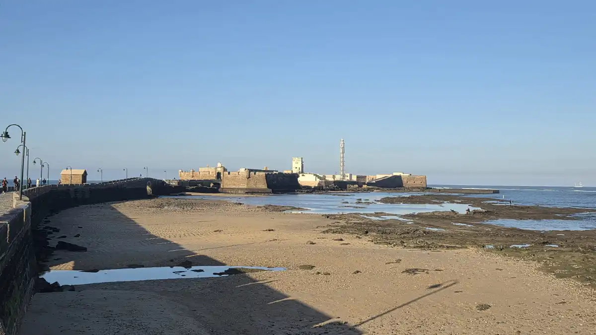 Castillo de San Sebastián con la bajamar de este 28 de febrero. Foto: José Luis Porquicho.