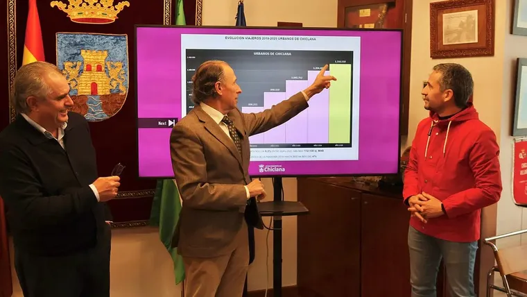 El transporte urbano de Chiclana cerró el año 2025 con cifras sin precedentes. Según los datos presentados por el regidor José María Román, acompañado del delegado de Movilidad José Vera y del gerente de la empresa concesionaria Nicolás Rodríguez.