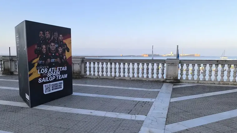Cartel de la Sail GP que ya luce en el paseo sobre la playa de La Caleta, donde el sábado se celebrará un concierto. Foto: José Luis Porquicho Prada.
