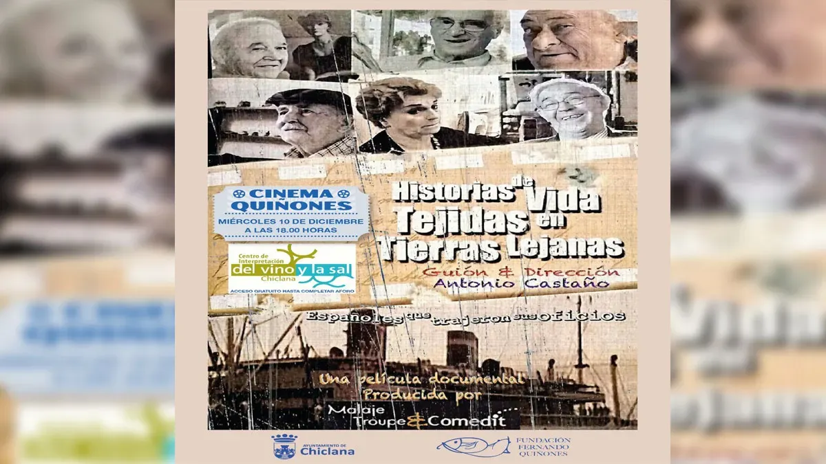 El Centro de Interpretación del Vino y la Sal de Chiclana acogerá este próximo miércoles 10 de diciembre la presentación del documental "Historias de vida tejidas en tierras lejanas", que está dirigido por el cineasta puertorrealeño Antonio Castaño, dentro del ciclo Cinema Quiñones impulsado por la Fundación Fernando Quiñones.