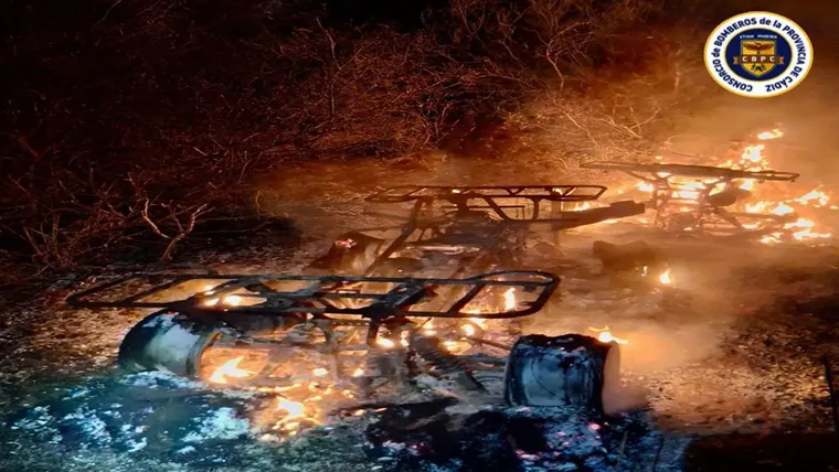 A su llegada, los bomberos encontraron ambos quads completamente envueltos en llamas y con serio riesgo de que el fuego se extendiera por el terreno colindante, debido a la presencia de hierbas secas y la ligera brisa que soplaba a esa hora.