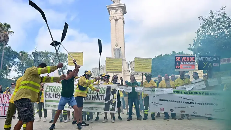 Tras la protesta de los bomberos forestales del Plan Infoca en Cádiz, la Junta de Andalucía ha salido al paso de las críticas. Sindicatos y oposición han denunciado en una manifestación esta mañana en Cádiz la precariedad en el servicio y la falta de medios, personal y materiales adecuados para afrontar los incendios.