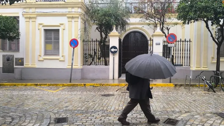 Entrada del colegio San Rafael de Cádiz este lluvioso jueves 5 de febrero. Foto: José Luis Porquicho Prada.