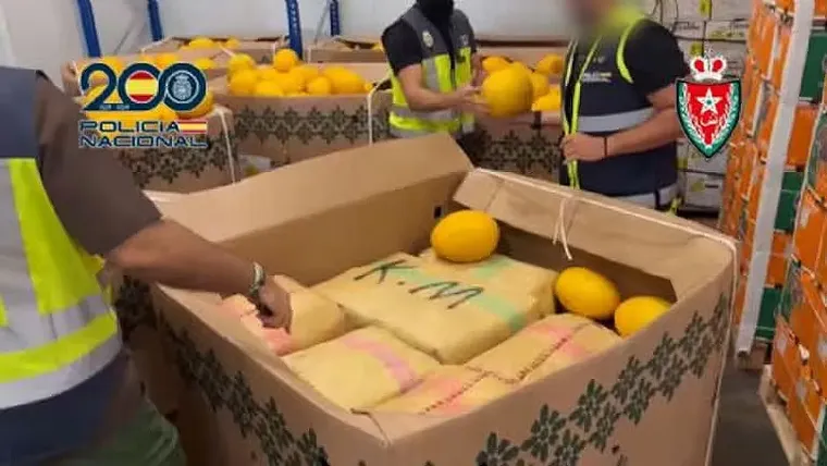 En apariencia, el tráiler transportaba palés de melones, pero tras la inspección directa se descubrió que el cargamento ocultaba 9.300 kilos de hachís. En el operativo se procedió a la detención de seis personas vinculadas a la red, quienes ingresaron de forma directa en prisión tras ser puestas a disposición de la autoridad judicial.