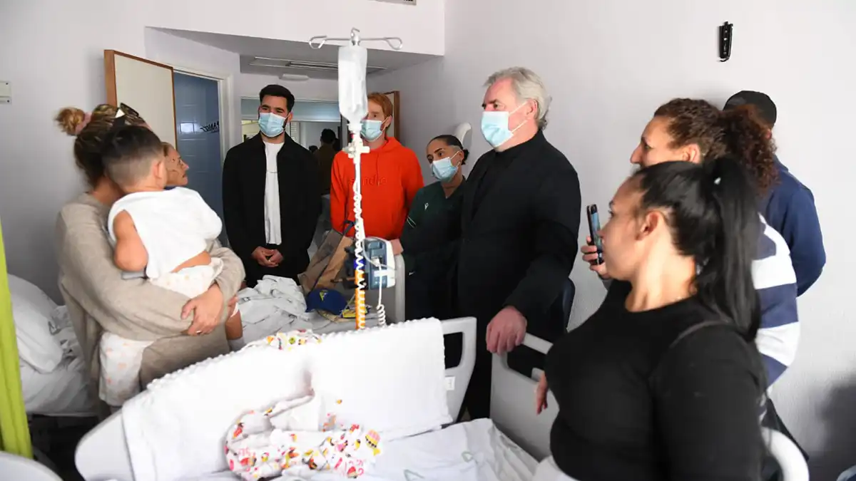 Las manos se estrecharon, los abrazos se multiplicaron y las sonrisas hablaron por sí solas, pese a tratarse de unos momentos especialmente complicados. Los pasillos y habitaciones del hospital se llenaron ilusión navideña y cadista, y se convirtieron por unos minutos en un lugar donde el fútbol se mezcló con la emoción más sincera.