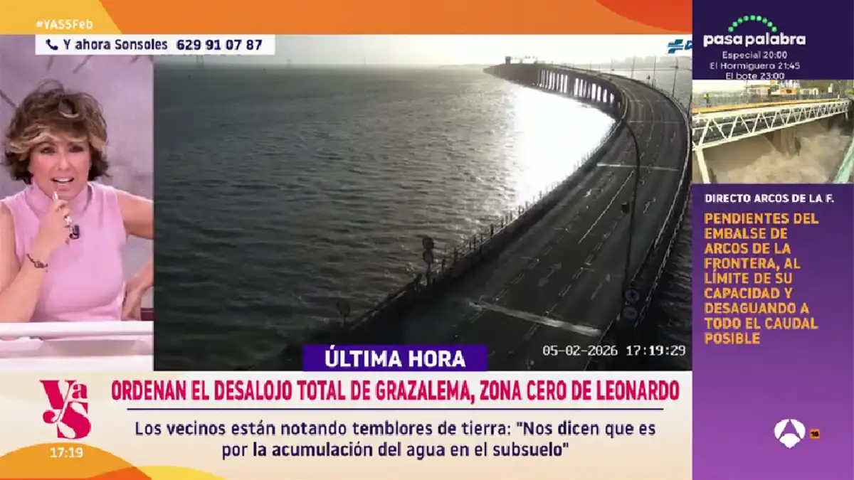 En el programa de este jueves de Ahora Sonsoles, Sonsoles Ónega se refirió de nuevo al Puente José León de Carranza para pedir disculpas por el error cometido el día anterior, cuando el espacio confundió el mar, la Bahía de Cádiz, que rodea al puente con una supuesta inundación provocada por la lluvia.