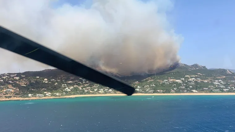 🚨El Plan Infoca ha activado la situación operativa 1 por un incendio forestal declarado esta tarde en la sierra de la Plata, frente a la playa de Bolonia (Cádiz).