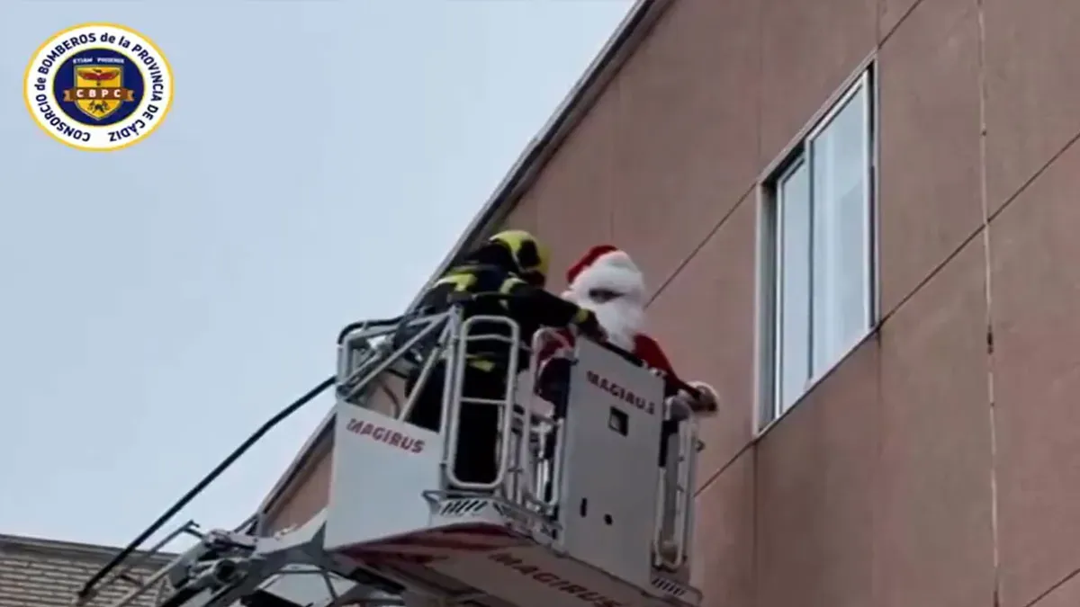 Así sorprendieron los bomberos de Jerez a los niños del hospital junto a Papá Noel
