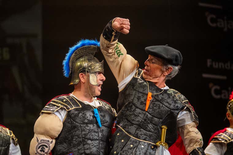 La chirigota no tardó en hacerse notar, para bien o para mal,  desde su puesta en escena, mostrando un grupo caracterizado como romanos, evocando, salvando enormemente las distancias, recuerdos de Las ruinas romanas de Juan Carlos Aragón. Sin embargo, la puesta en escena dejaba bastante que desear y generó, desde el inicio, cierta incertidumbre entre los presentes. La agrupación comenzó su actuación en una posición defensiva, lo que incrementó esa sensación de extrañeza.