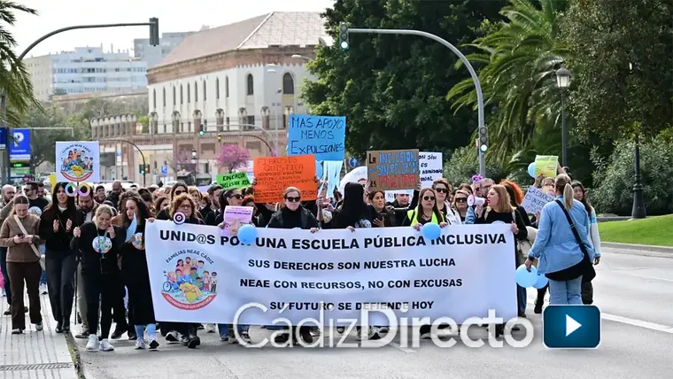 “No pedimos privilegios, pedimos derechos”. Con esta idea, familias de Cádiz, junto a colectivos educativos, han salido a la calle para denunciar la situación que viven los alumnos con NEAE (Necesidades Específicas de Apoyo Educativo) en los centros públicos.