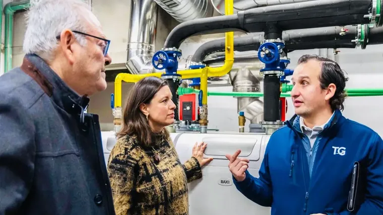 La configuración garantiza la continuidad del servicio, ya que, si una caldera presenta alguna incidencia, el suministro se transfiere de forma automática a la otra, evitando interrupciones.