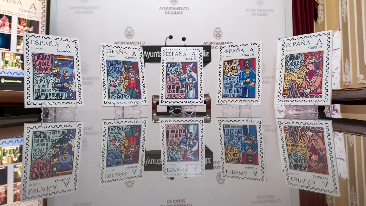 El Ayuntamiento de Cádiz y el Aula de Cultura del Carnaval rinden homenaje a las agrupaciones ganadoras con una edición especial de sellos