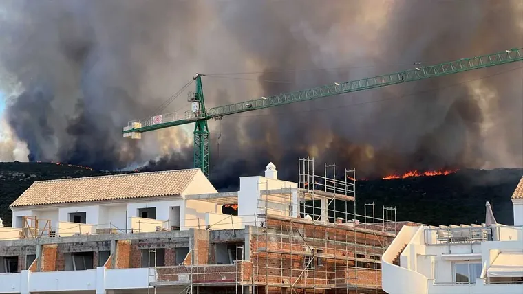 Incendio aproximándose a una urbanización en Tarifa.
