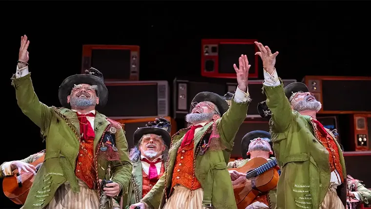 Comparsa Los Humanos en el pase de cuartos de final. COAC 2026. Foto: José María Reyna