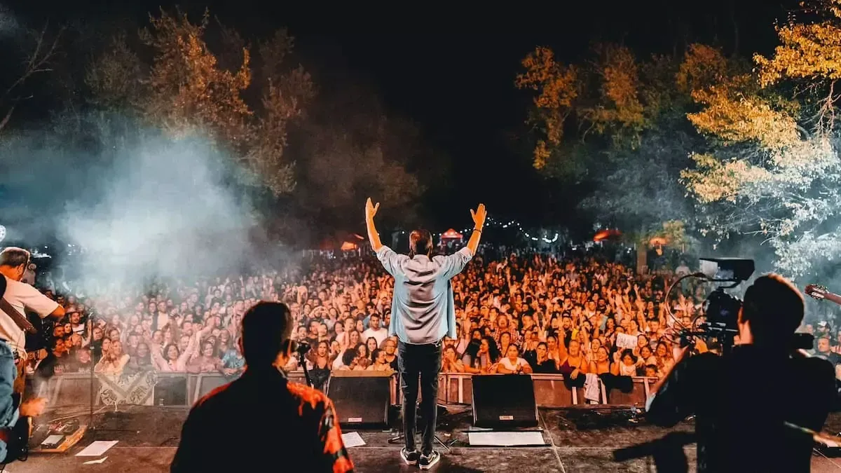 Cantante saludando al público en SierraSur 2025.