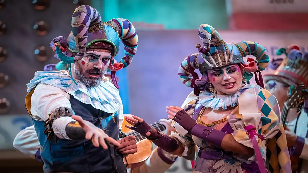 Comparsa Los pájaros carpinteros en el pase de semifinales. COAC 2026. Foto: José María Reyna