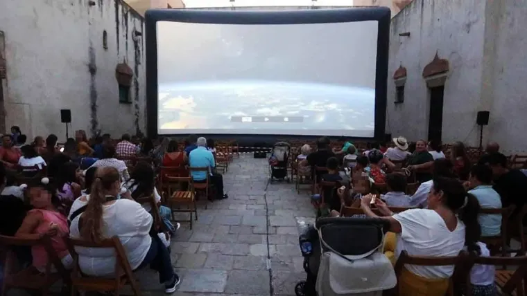 El patio del Castillo, convertido en una gran sala de proyección de cine al aire libre, ofreciendo un ambiente único donde disfrutar de películas pensadas para todos los públicos, sobre todo orientada al público infantil y juvenil.