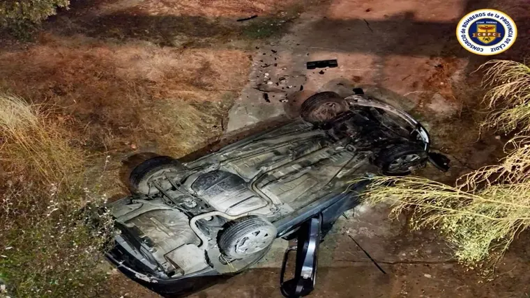 Horas más tarde, a las 23:55, una nueva llamada alertó de otro siniestro en el kilómetro 68. En este caso, se trataba de un turismo que se salió de la carretera y terminó volcado.