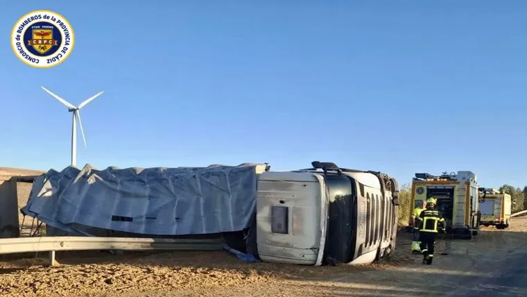 El accidente originó que la carga se derramara sobre la calzada, complicando el tráfico en la zona.