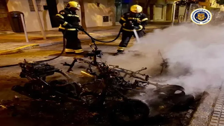 Tres motos calcinadas en Cádiz tras un incendio en la calle Huerta del Obispo