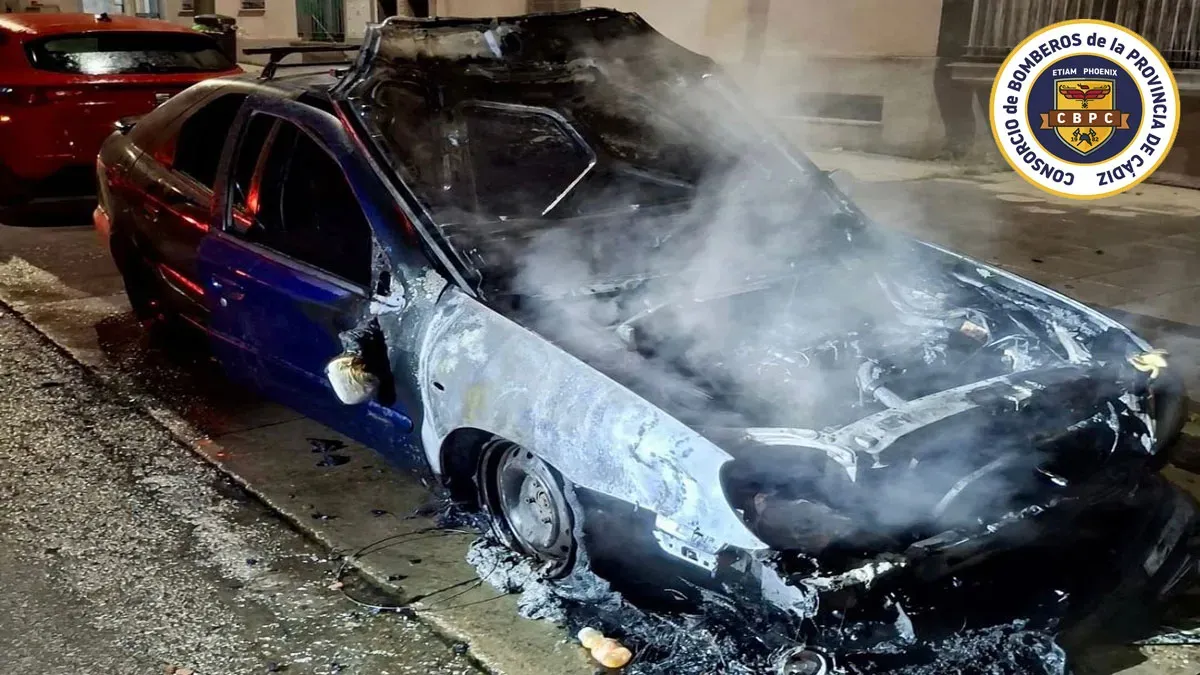 El primer aviso se registró durante la madrugada en Jerez en el que los Bomberos del parque local se desplazaron hasta la calle Rangel tras recibir la alerta de un vehículo que ardía mientras permanecía estacionado.
