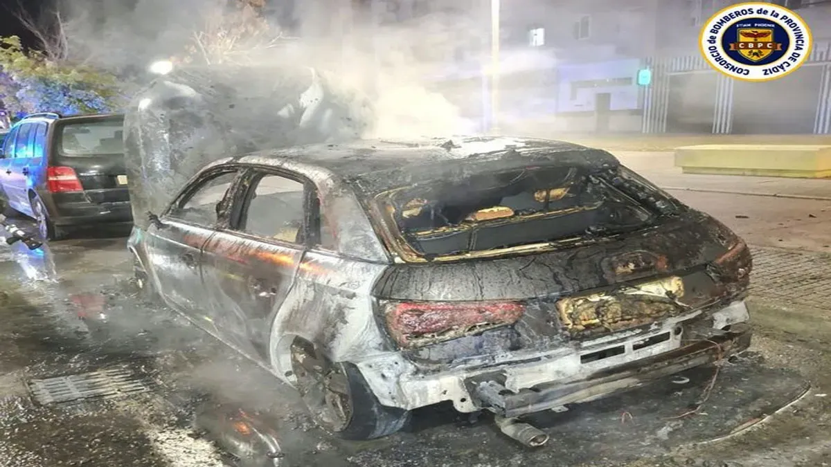 Un vehículo queda calcinado y las llamas afectan a otro coche aparcado en Jerez