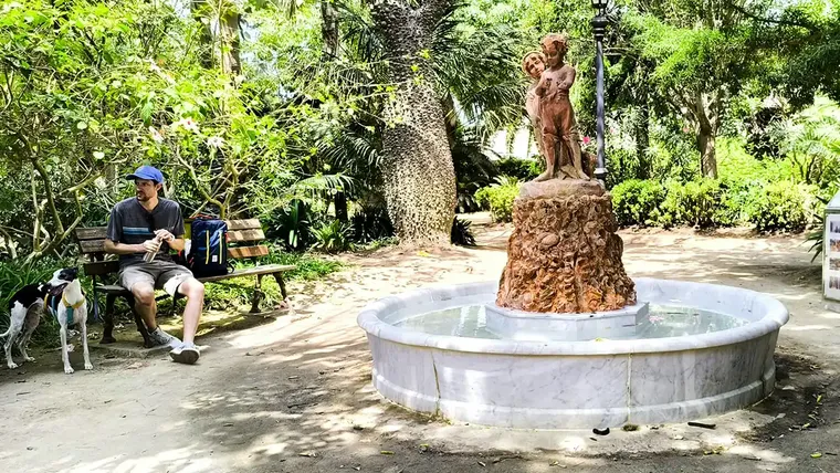 Vista de la fuente del Parque Genovés este domingo, ya sin corriente de agua tras el incidente. Foto: José Luis Porquicho Prada.