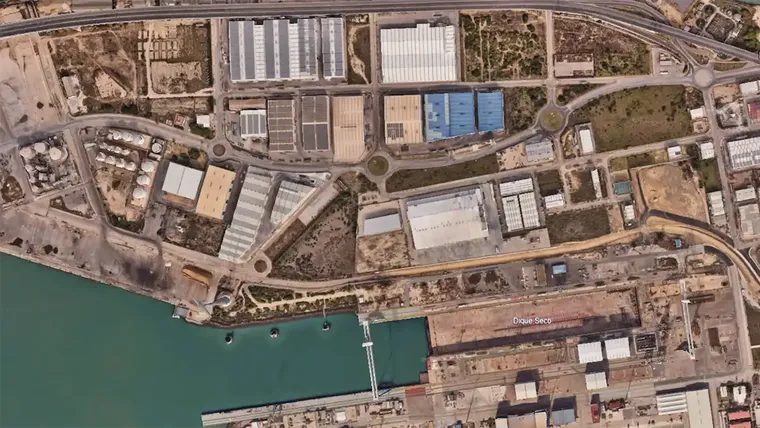 Vista aérea del muelle y el polígono industrial de La Cabezuela.