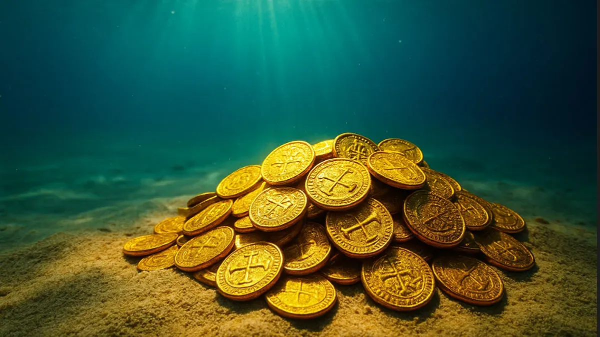 Doblones de oro en el fondo del mar.