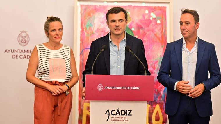 El alcalde de Cádiz, junto a la teniente de alcalde de Cultura del Ayuntamiento de Cádiz, Maite González, y el primer teniente de alcalde, José Manuel Cossi, han dado a conocer los detalles de la primera edición de Orgullos@s de nuestra historia, que en 2024 estará dedicada a Cádiz Fenicia.