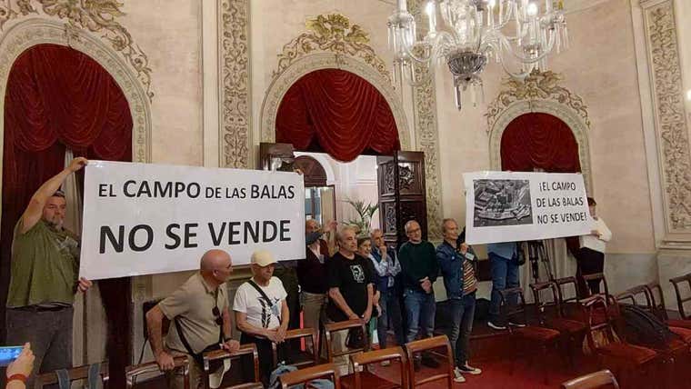 Paralelamente, se ha llevado a cabo en el Salón de Plenos una protesta de la iniciativa popular en contra del proyecto hotelero en el Campo de las Balas, vinculado en los próximos presupuestos al futuro de Valcárcel.