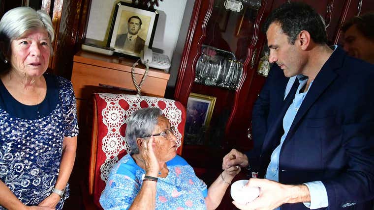 María Serrano, de 92 años, piropea al alcalde Bruno García durante la instalación de un detector de humo en su casa. "A este hombre no le suelto yo la mano", dice con cariño mientras le agarra la mano al alcalde. ¡Mucho age! 💙